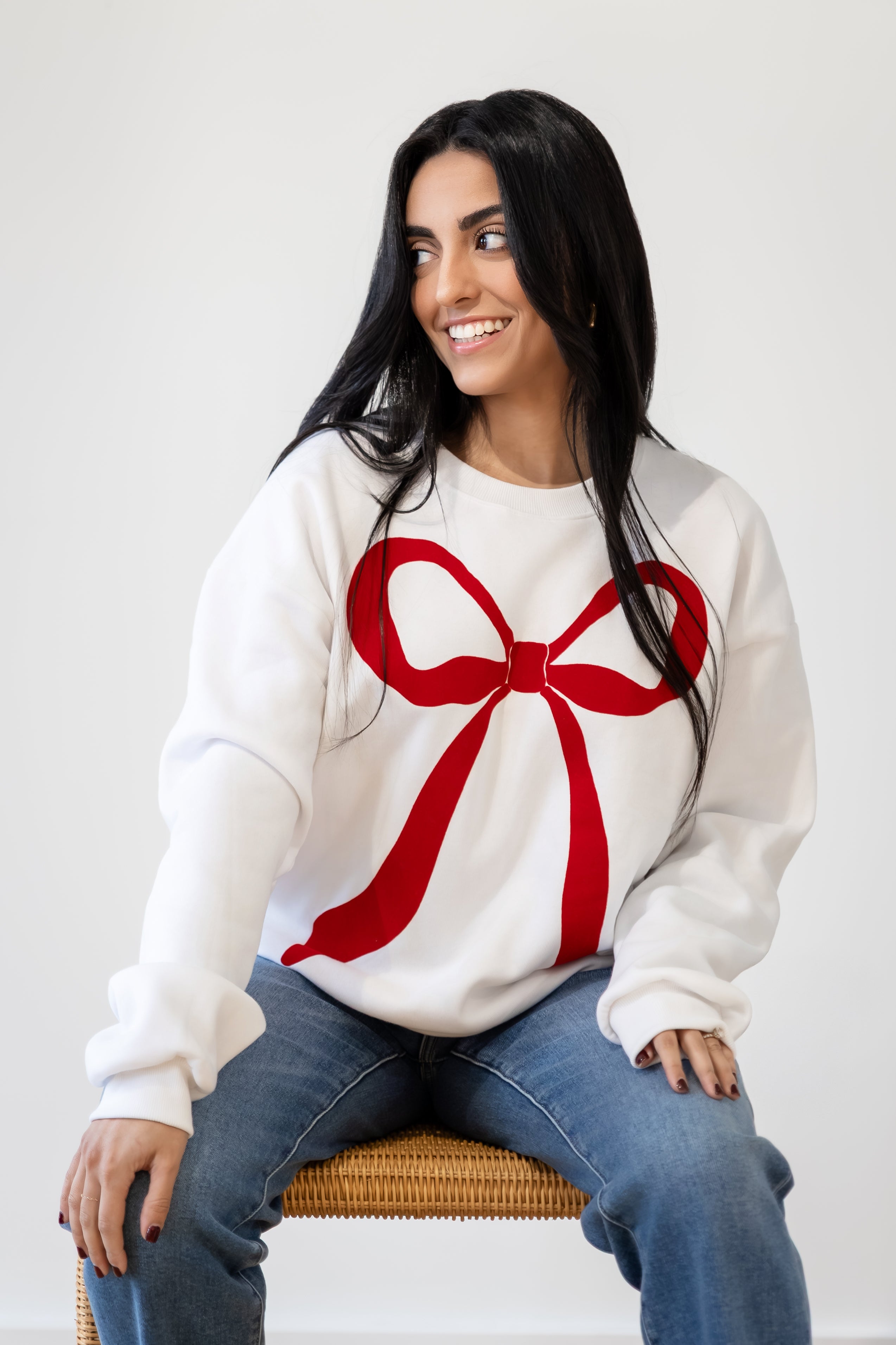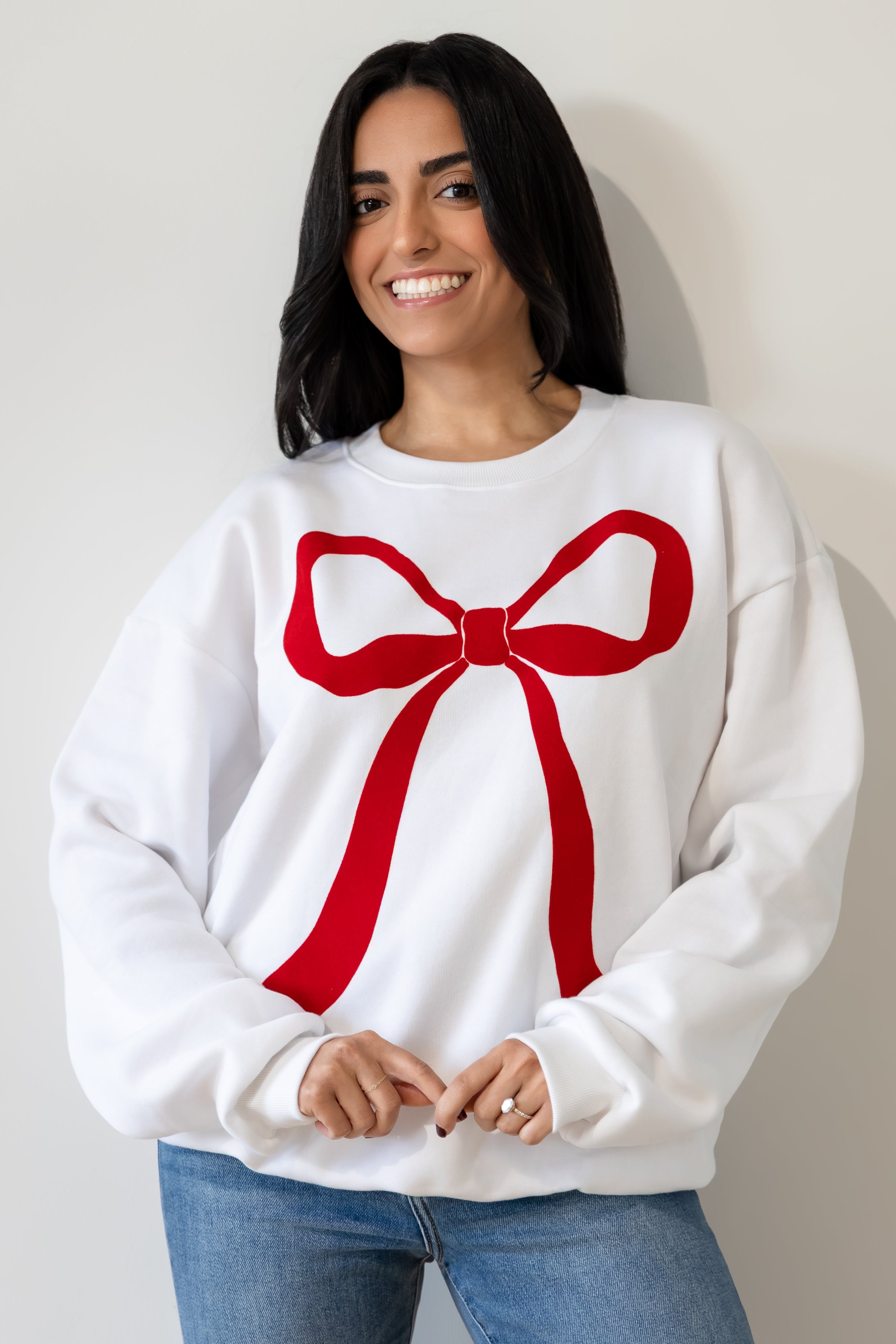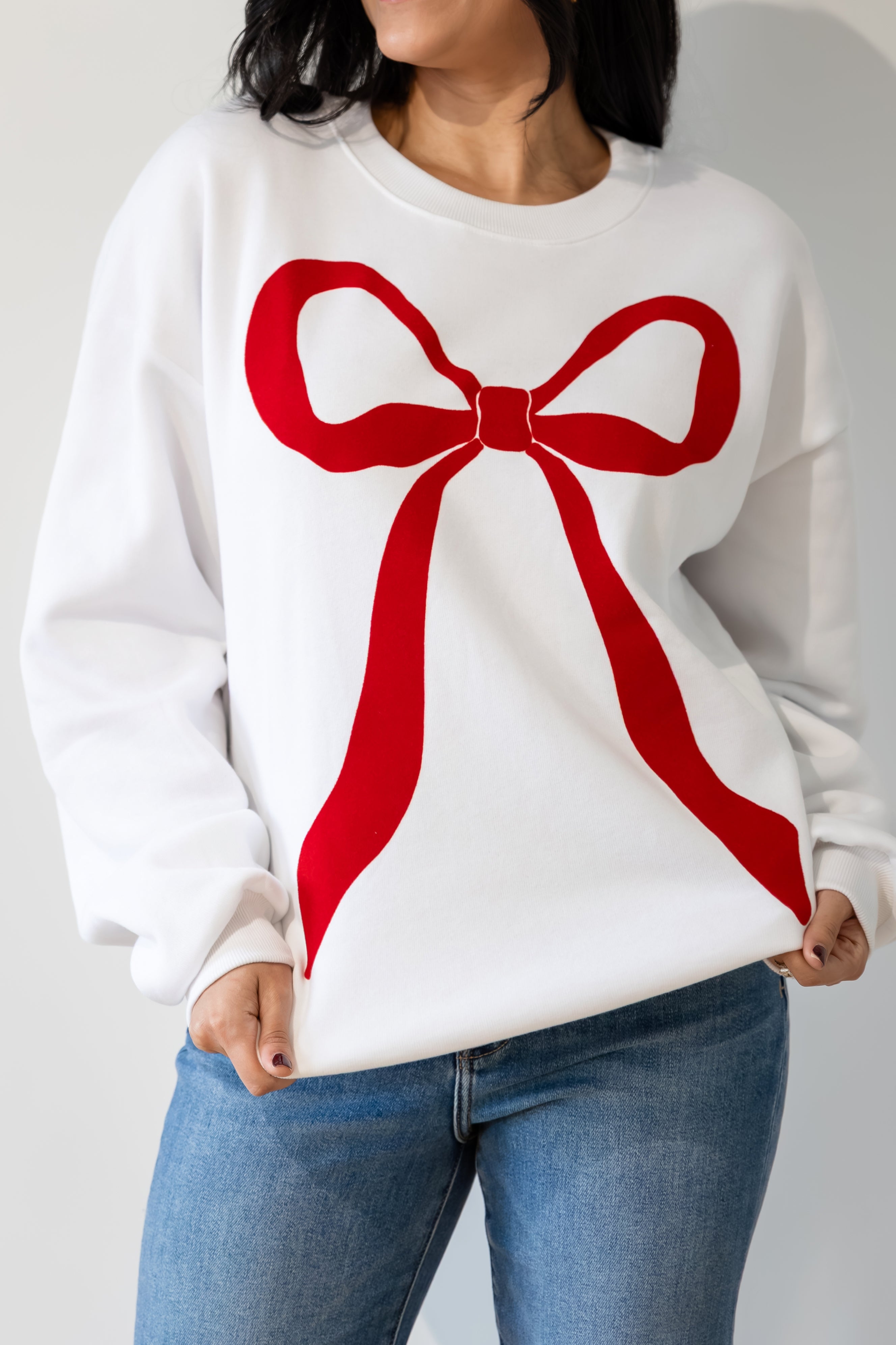 Flocked Bow Sweatshirt