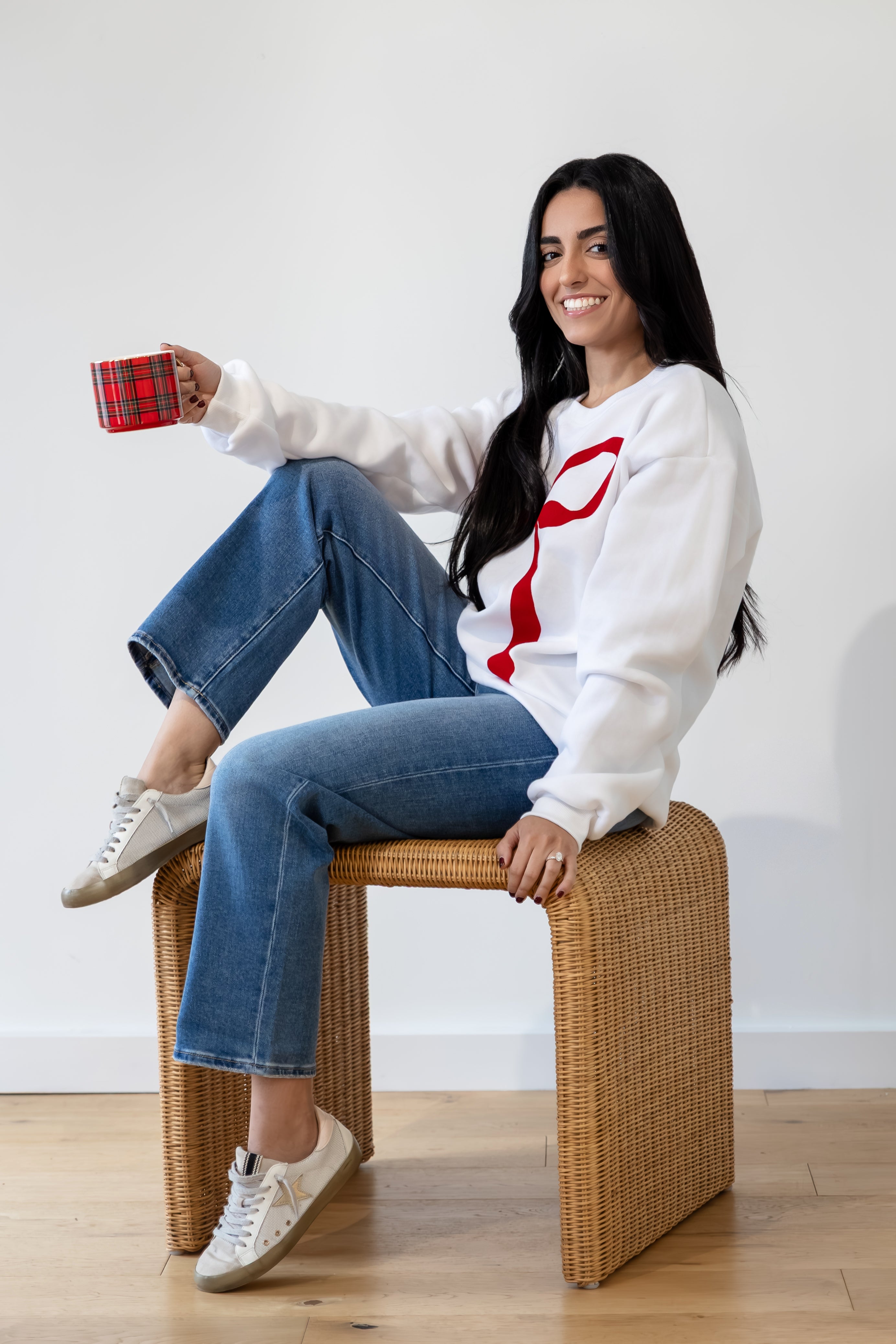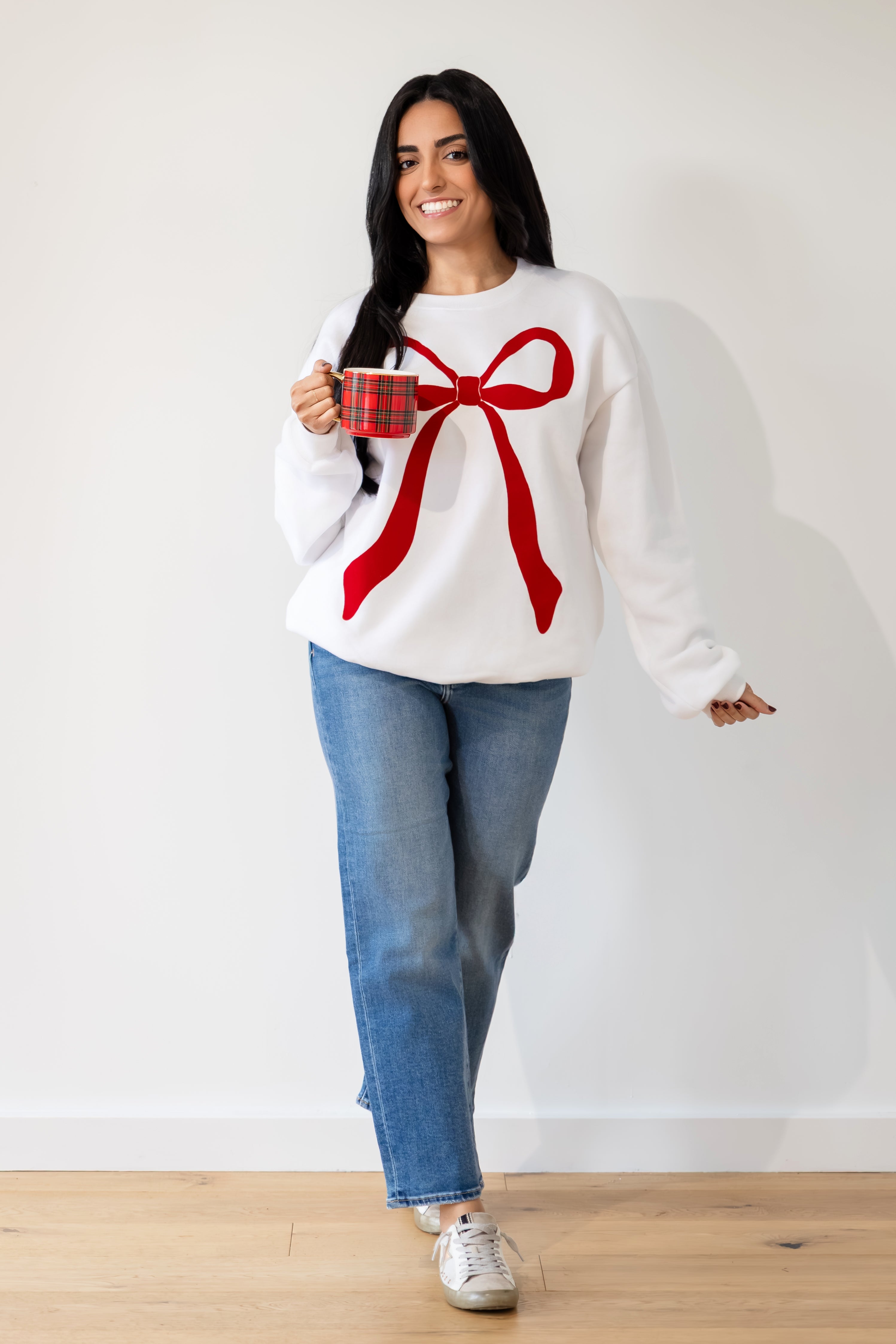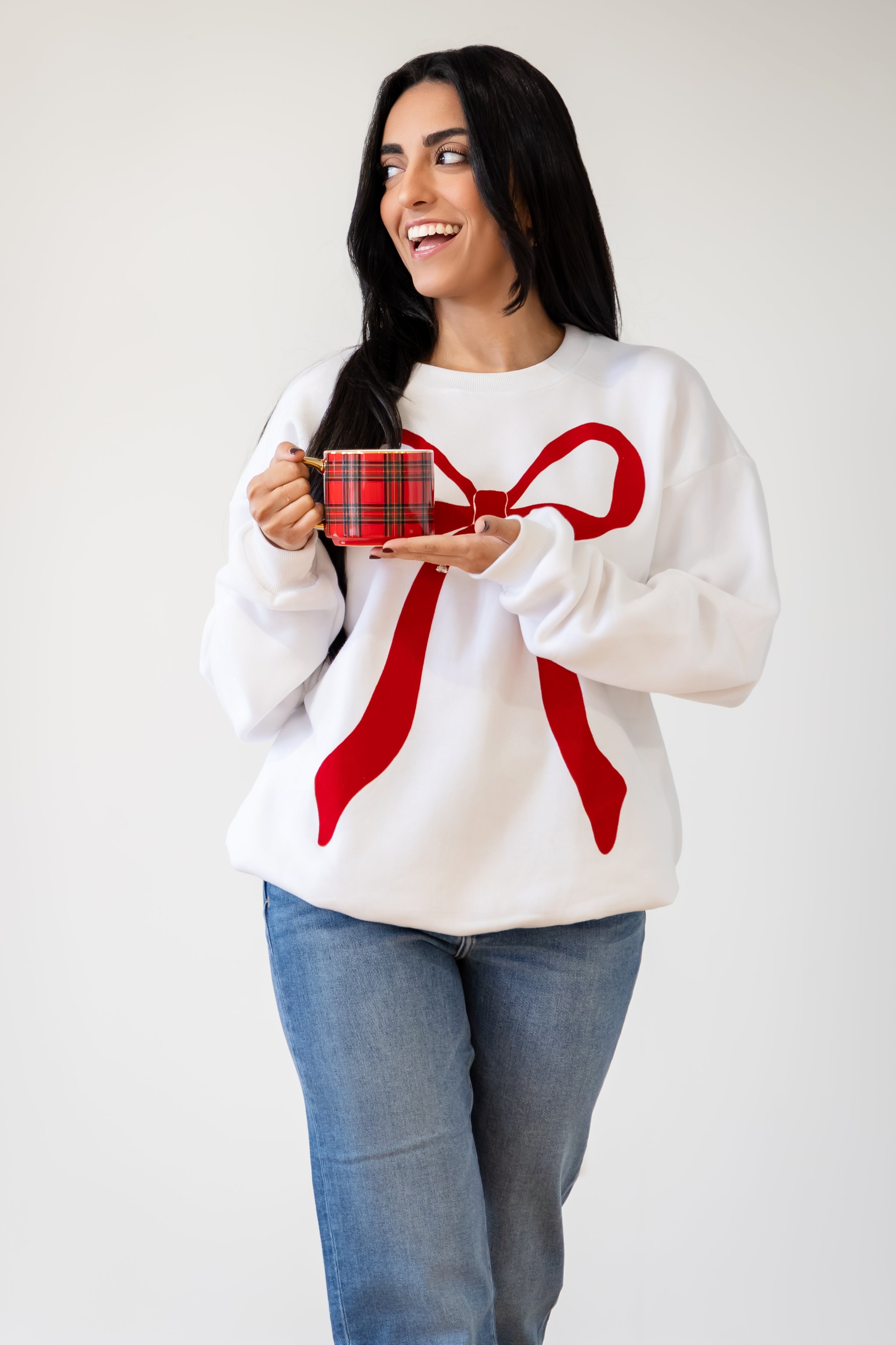 Flocked Bow Sweatshirt