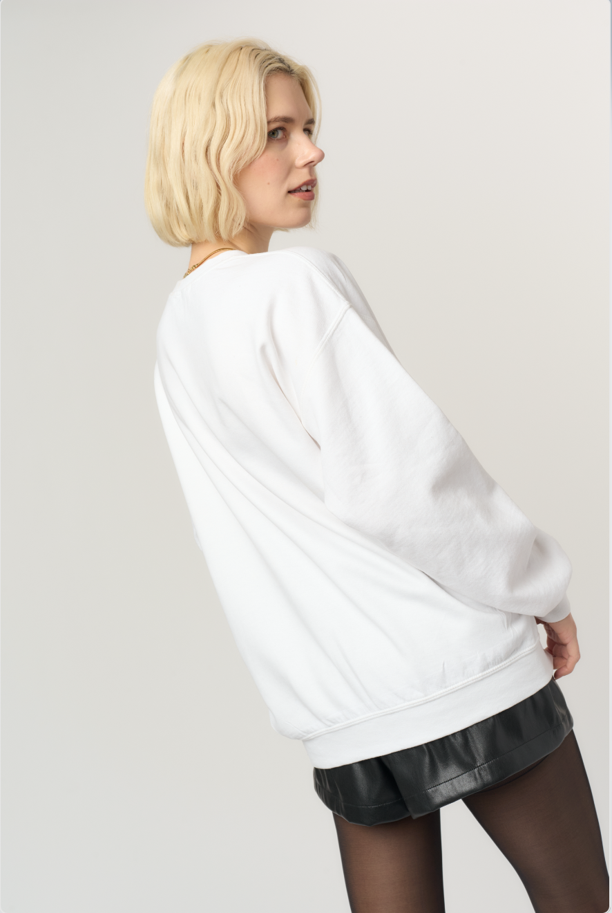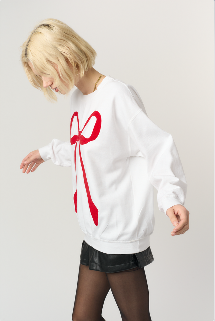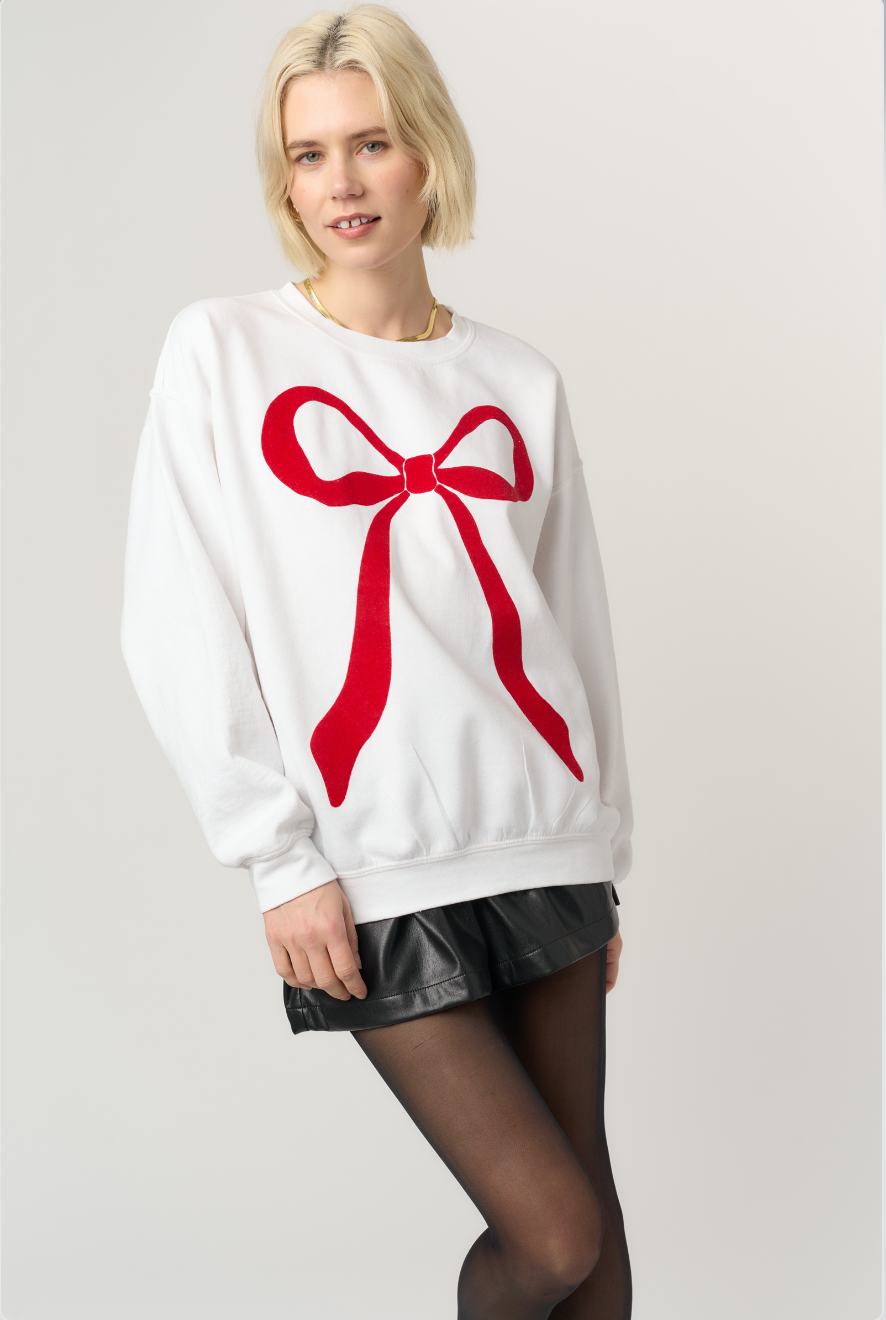 Flocked Bow Sweatshirt - S/M / White is backordered and will ship as soon as it is back in stock.
