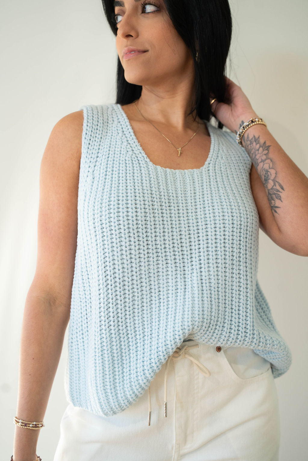 Sundays Sweater Tank - M / Light Blue is backordered and will ship as soon as it is back in stock.